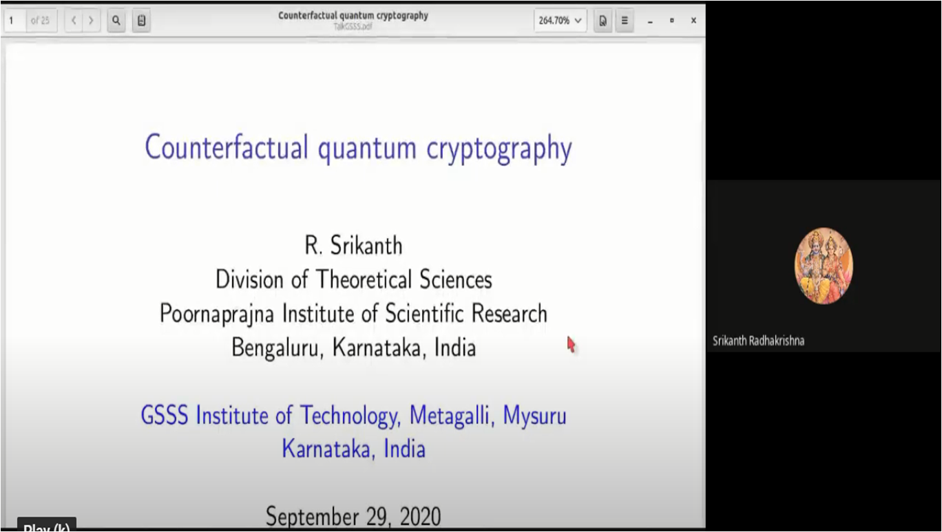 Main Album » Department of Physics, GSSSIETW, Mysuru had organized a Webinar on “Counterfactual Quantum Cryptography” by Dr. R. Srikanth, Associate Professor, Division of Theoretical Sciences, Poornaprajna Institute of Scientific Research, Bengaluru on September 29th 2020
