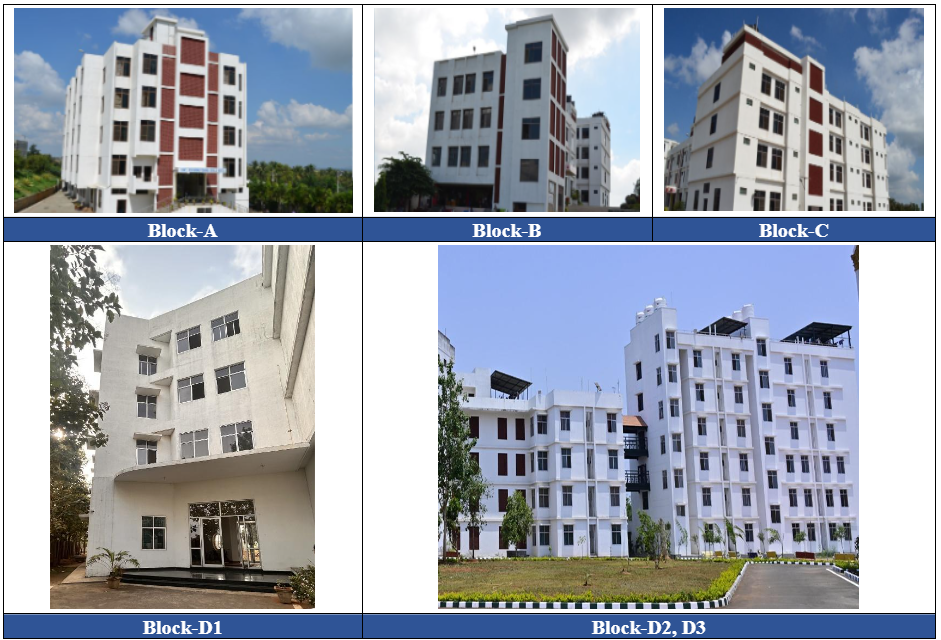 BLOCK D3: accommodates degree students which provides 2 sharing and 4 sharing rooms along with attached bath facilities.