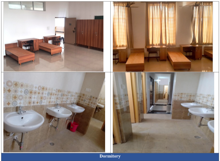 DORMITORY: 5 and 7 sharing rooms with individual wardrobe, study table, chair and cot are provided. A common bath and washroom facility with hot water, lift, 24×7 power backup and security is provided.