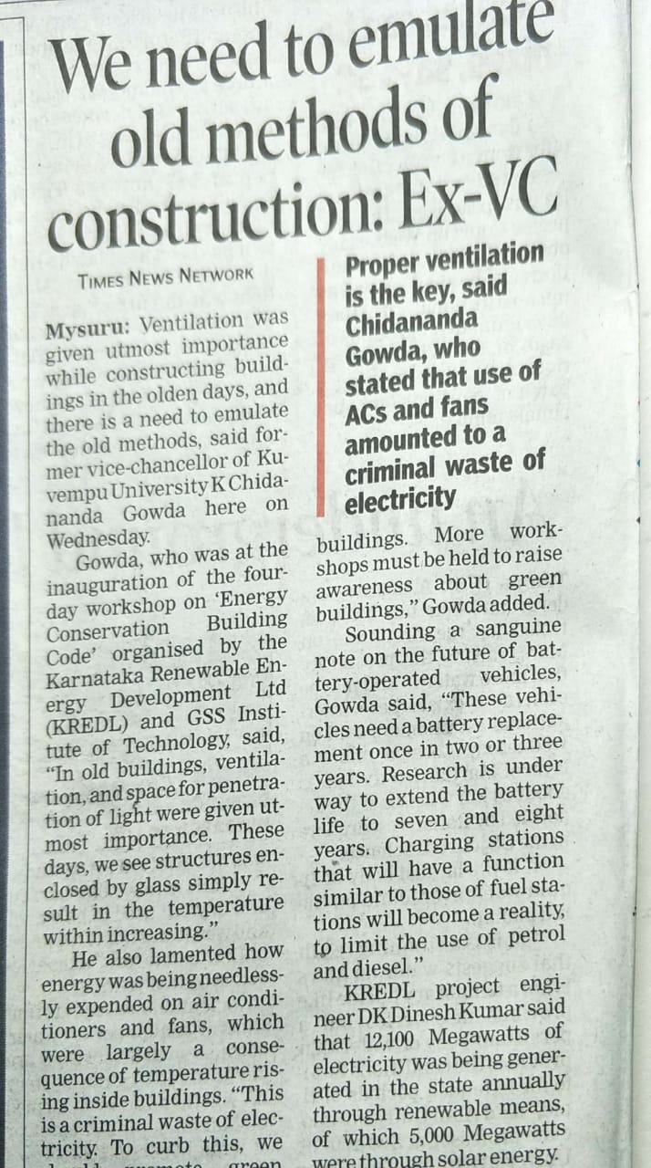 » 4days Specialised training programme on “Energy Conservation building Code” sponsored by KREDL, Mysuru.
