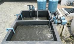 - Aeration tank: The water from the equalization tank is pumped into the aeration tank, where the water is kept agitated in the presence of compressed air for several hours for oxidation of biologically oxidizable materials by a high population of microbes. Then the water is passed into a clarifier tank.