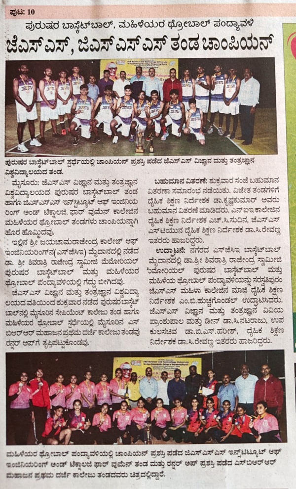 » The GSSSIETW Mysuru Women’s Throwball Team won the match and secured the First position in the JSS Memorial City Intercollegiate ThrowballTournament 2024-25, held on 25th October 2024 at JSS Science and Technology University Mysuru